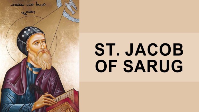 Jacob was born in A.D. 451 in the town of Kurtam in Mesopotamia. After completing his primary education, he joined the theological school of Edessa. There he gained deep knowledge not only in Sacred Scripture, liturgy, and the writings of the Church Fathers, but also in grammar, rhetoric, music, and mathematics. Unwilling to be drawn into the theological controversies that caused disputes at the great ecumenical councils of the fifth century (Ephesus and Chalcedon), he chose a life of prayer in the monastery at Hawra in Sarug.